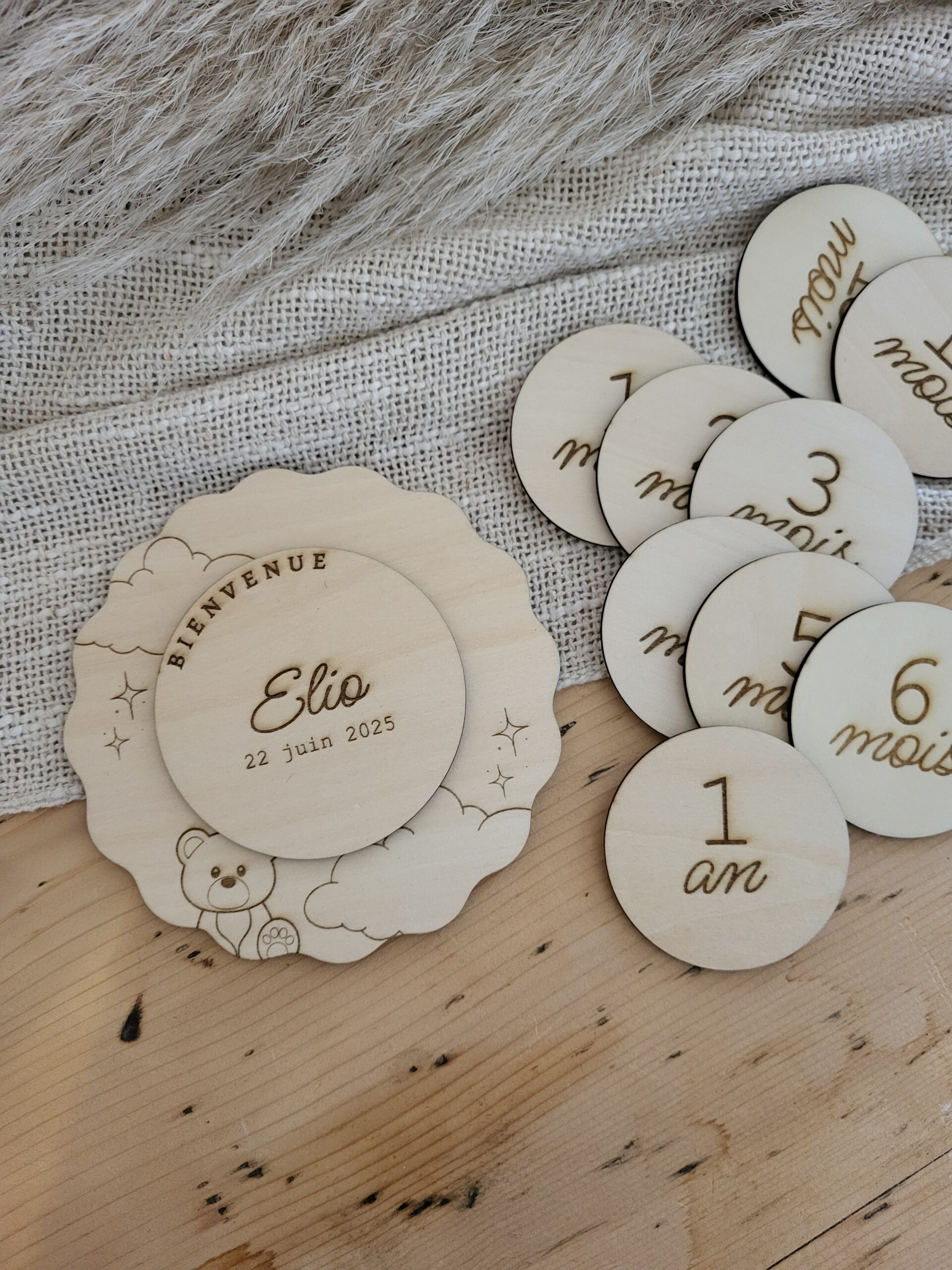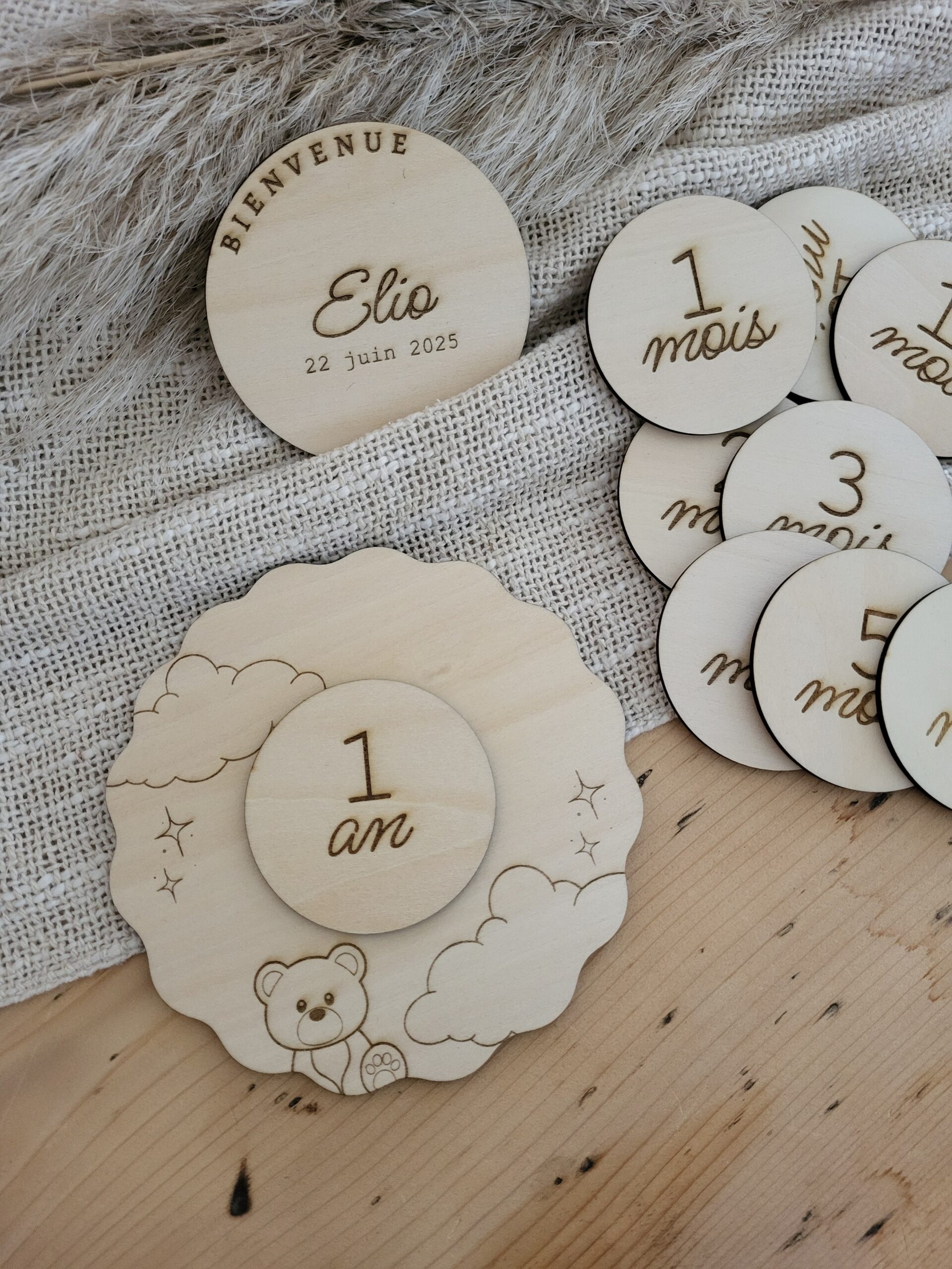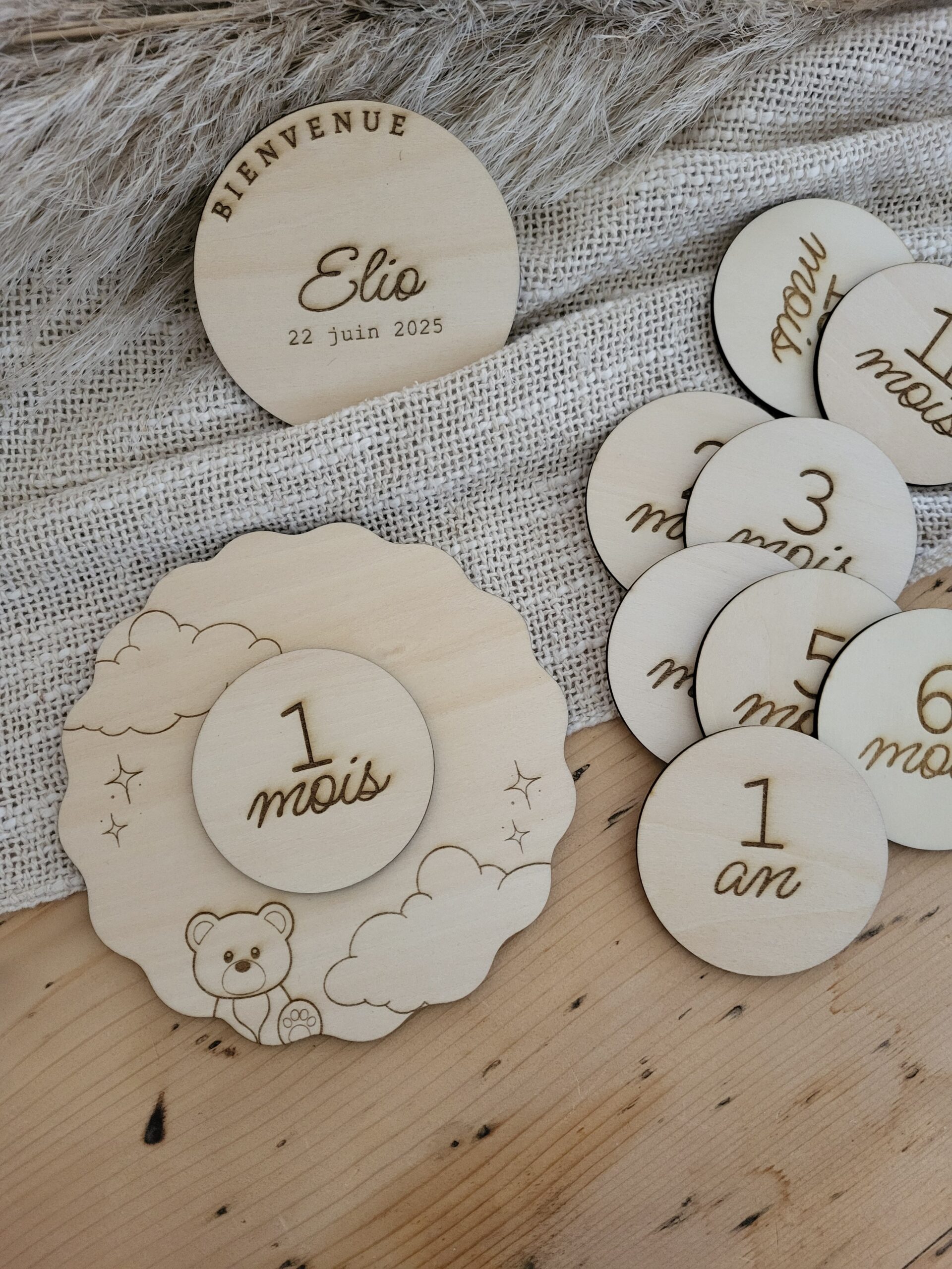 Ces jolies cartes étapes en bois accompagnent bébé mois après mois pour immortaliser ses progrès et créer de précieux souvenirs en photo. Personnalisées avec le prénom et la date de naissance, elles sont parfaites aussi bien comme cadeau de naissance que pour les futurs parents qui souhaitent préparer l’arrivée de leur enfant et garder une trace de cette première année. (Chaque rond du mois est aimanté au dos, ce qui permet de les changer facilement au fil du temps)
