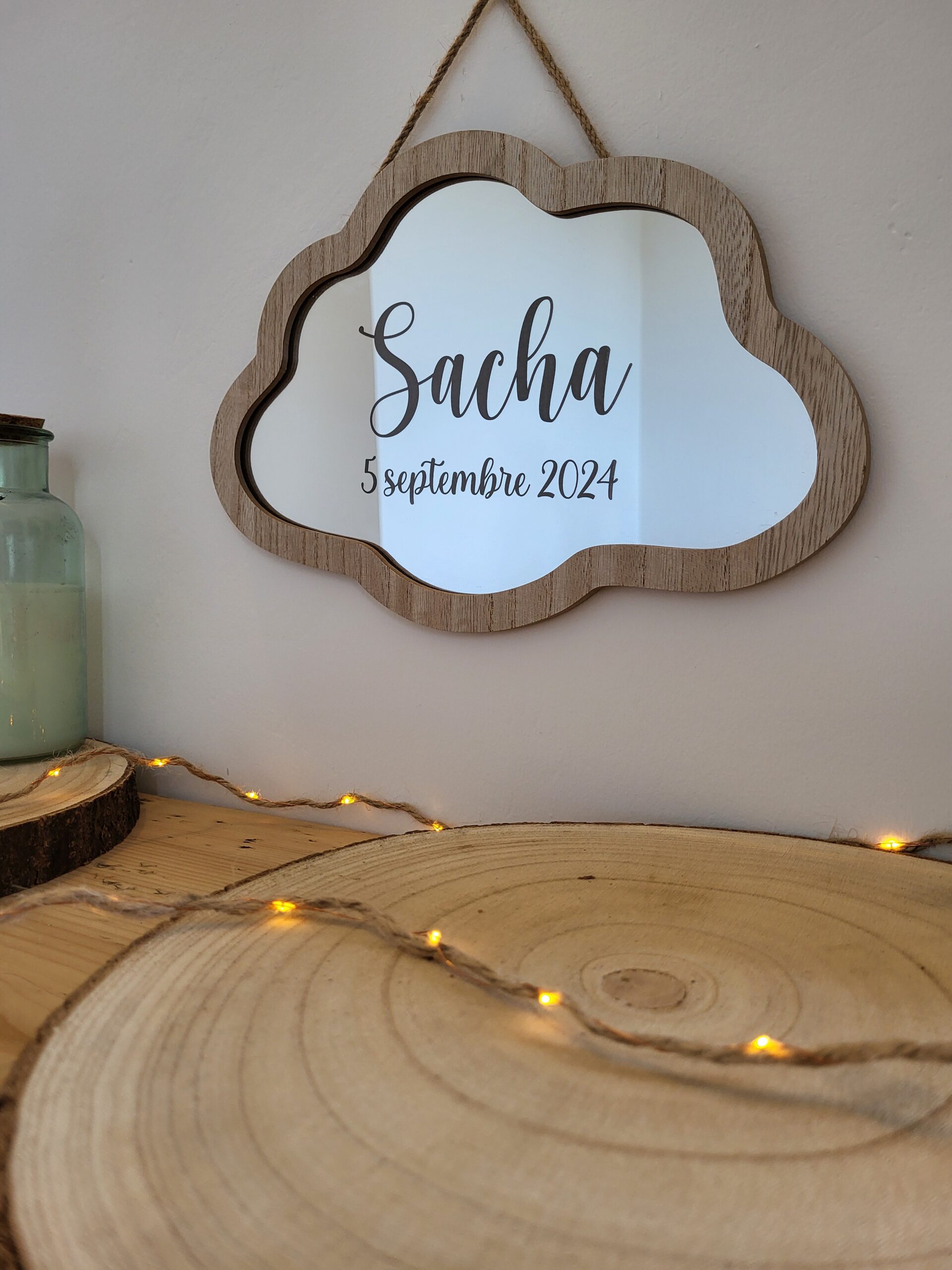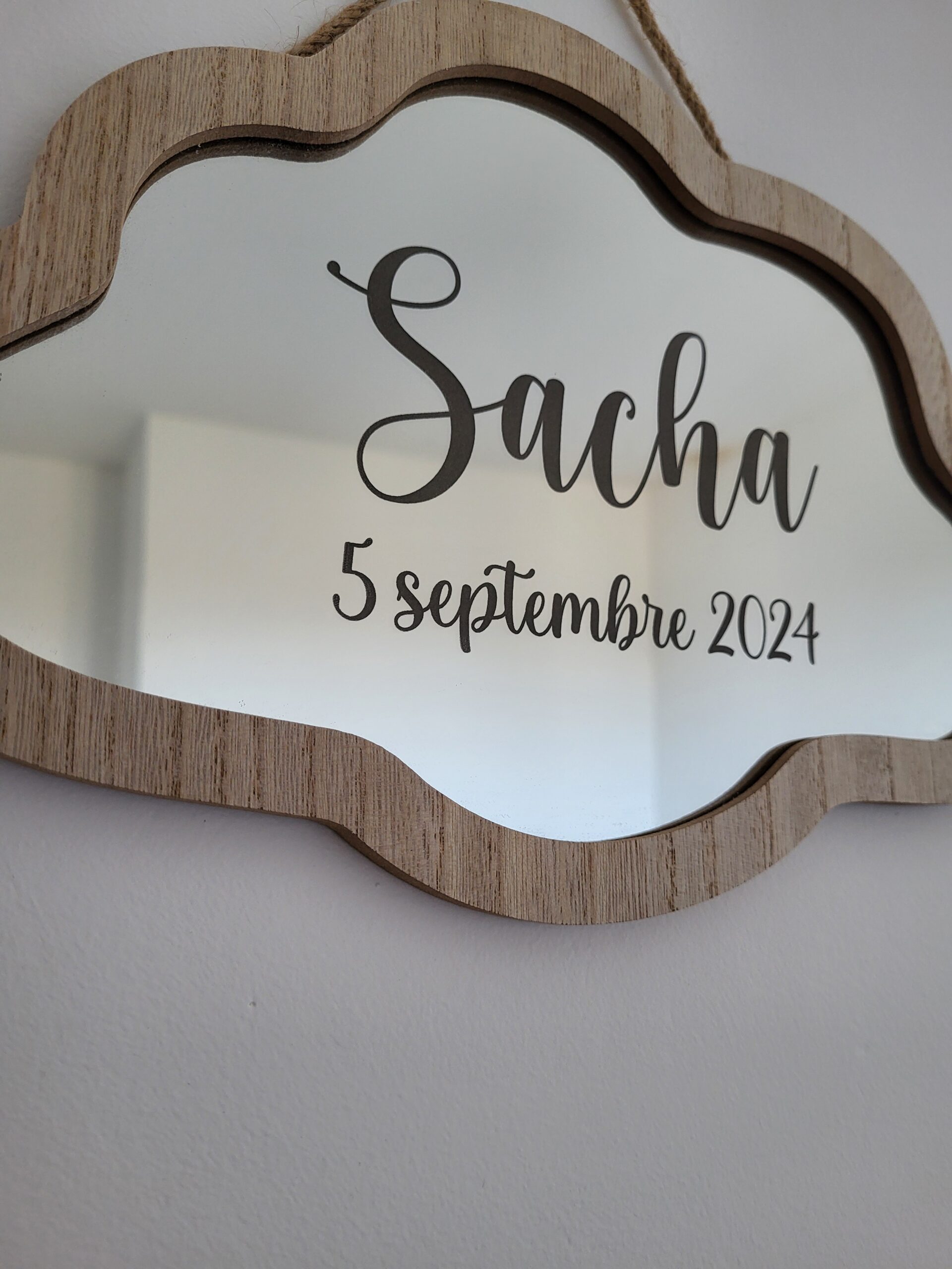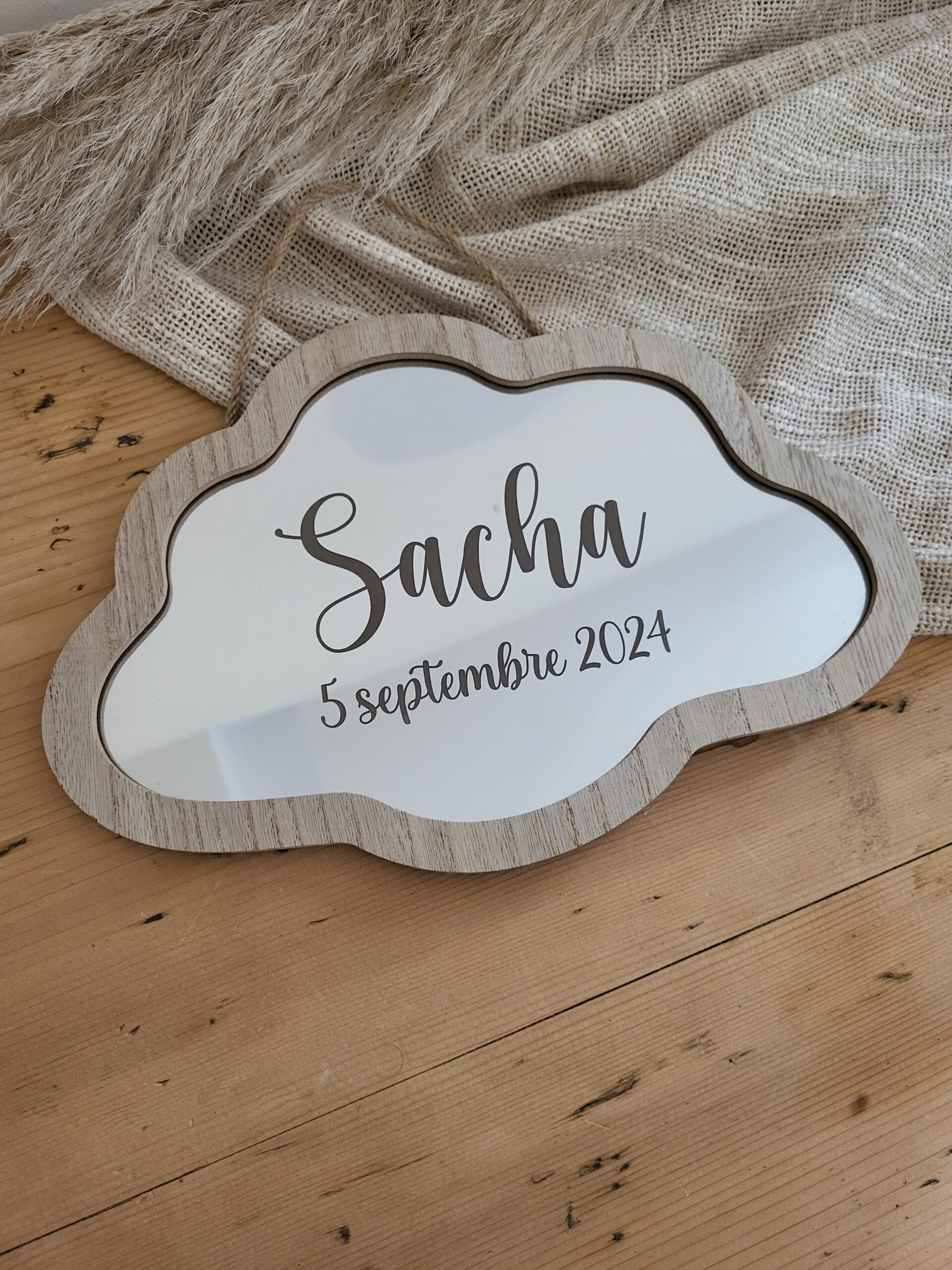 Le miroir nuage pour apporter une touche délicate et originale à la décoration d’une chambre d’enfant. Personnalisé avec le prénom et la date de naissance, il devient un objet unique qui trouvera facilement sa place dans un univers doux et chaleureux.
